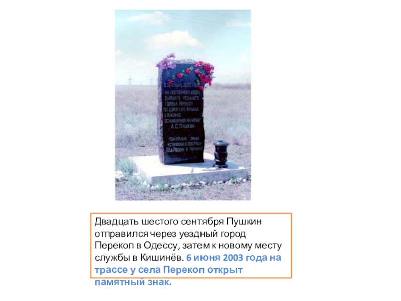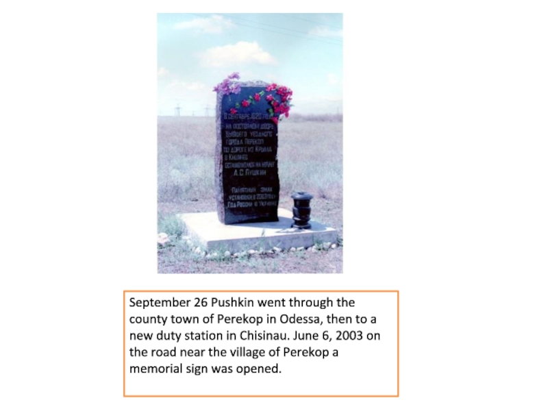 Слайд 30September 26 Pushkin went through the county town of Perekop in