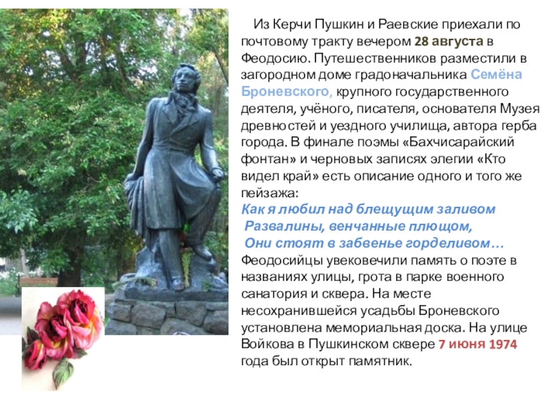 Слайд 7From Kerch, Pushkin and Raevsky arrived by postal traffic in the