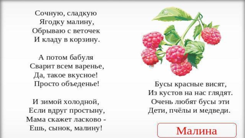 Презентация, доклад для детей дошкольного возраста на тему Ягоды