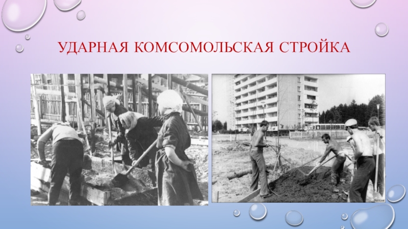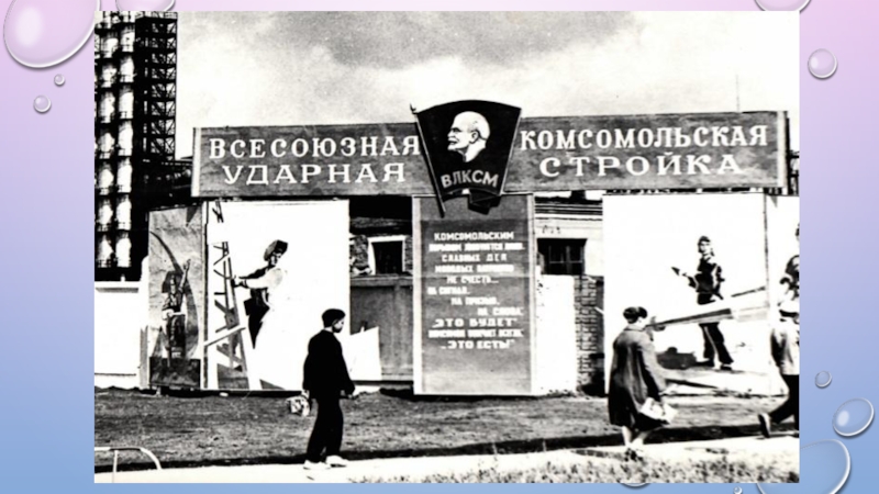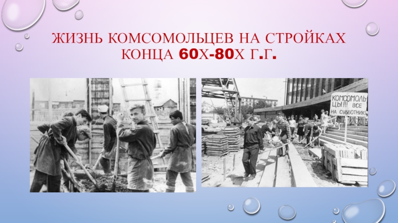 Слайд 14Жизнь комсомольцев на стройках конца 60х-80х г.г.