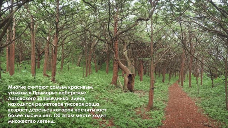 Слайд 10Многие считают самым красивым уголком в Приморье побережье Лазовского заповедника. Здесь
