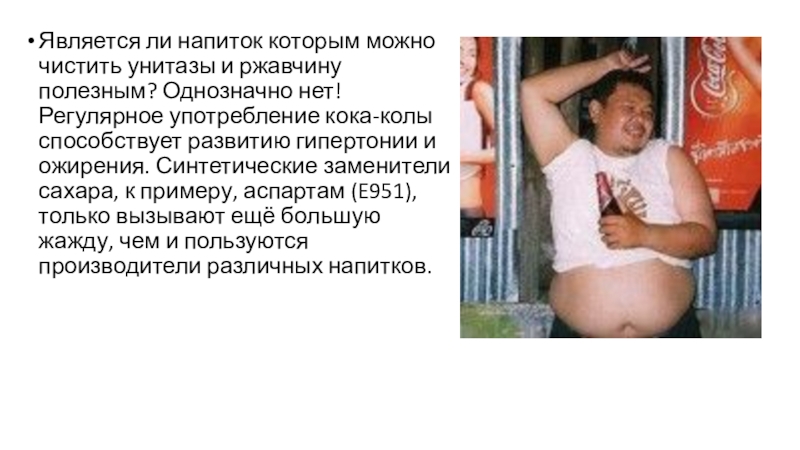 Слайд 10Является ли напиток которым можно чистить унитазы и ржавчину полезным? Однозначно
