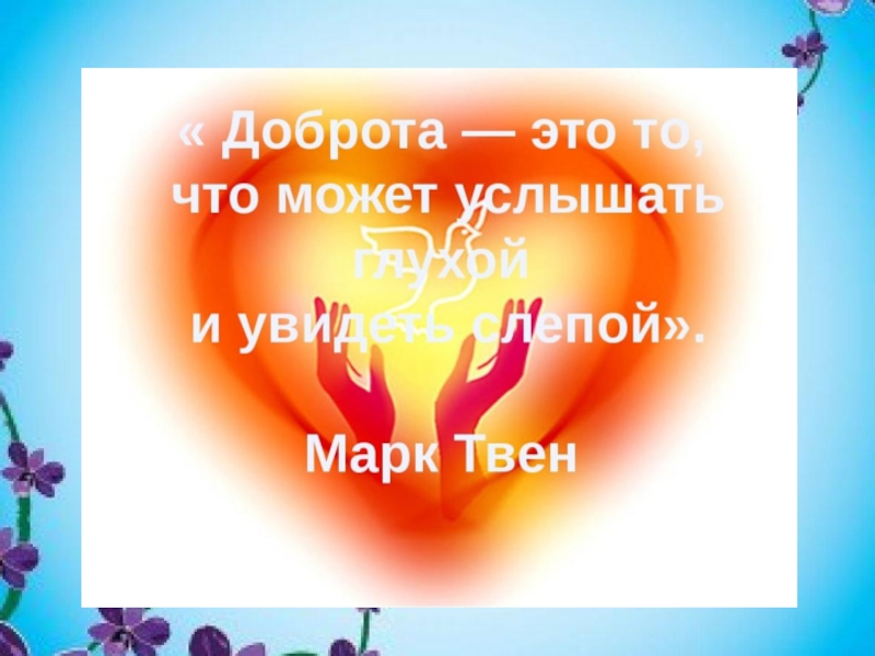 Слайд 6«ДОБРОТА- отзывчивость, душевное расположение к людям, стремление делать добро другим»,