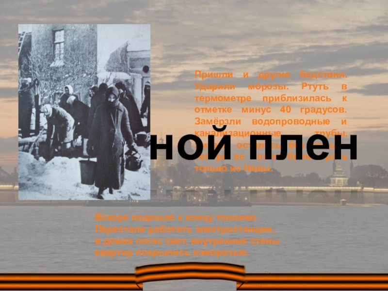 Вскоре подошло к концу топливо. Перестали работать электростанции, в домах погас свет, внутренние стены квартир покрылись изморозью.