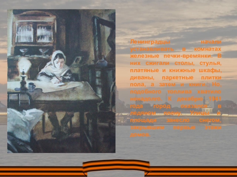 "…Наш любимый Ленинград превратился в свалку грязи и покойников. Трамваи давно не ходят, света нет, топлива нет, вода замерзла, уборные не работают. Самое главное - мучает голод".