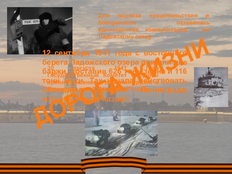 30 августа 1941 года Государственный Комитет Обороны принял решение о доставке грузов в Ленинград через Ладожское озеро.