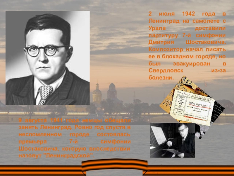 9 августа 1941 года немцы обещали занять Ленинград. Ровно год спустя в несломленном городе состоялась премьера 7-й симфонии Шостаковича, которую впоследствии назовут "Ленинградской".