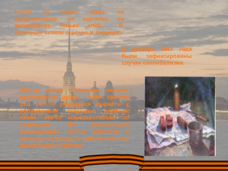 Ничто не имело цены: ни драгоценности, ни картины, ни антиквариат. Только хлеб. В булочные стояли огромные очереди.