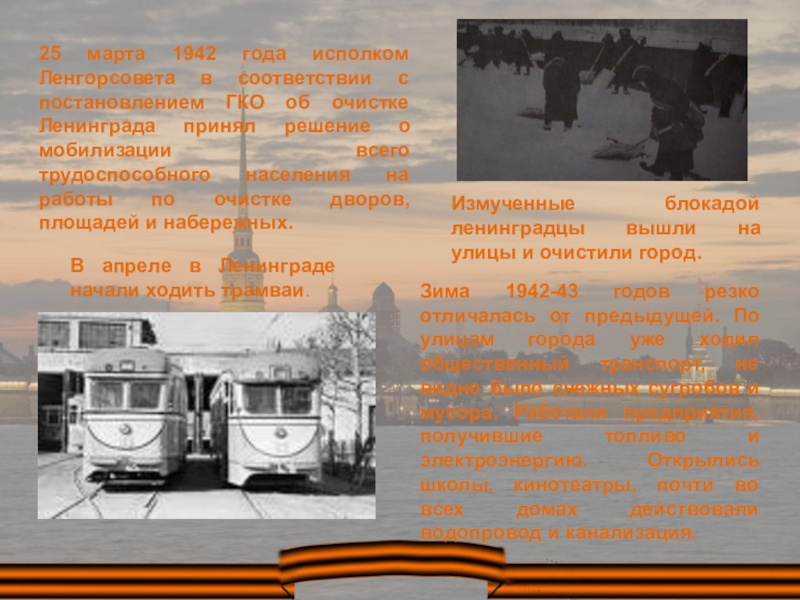 Измученные блокадой ленинградцы вышли на улицы и очистили город.