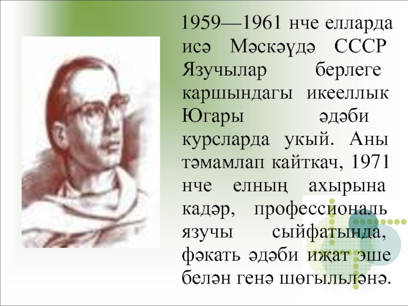 6. Ничәнче елдан бары тик әдәби иҗат эше белән генә шөгыльләнә?
