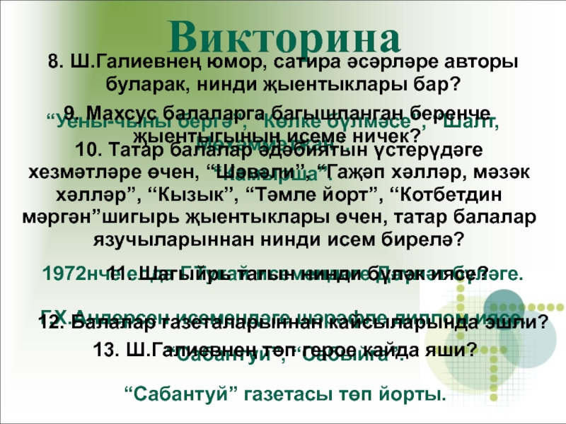 “Сабантуй”, “Сабыйга”.