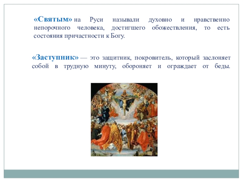 «Заступник» — это защитник, покровитель, который заслоняет собой в трудную минуту, обороняет и ограждает от беды.