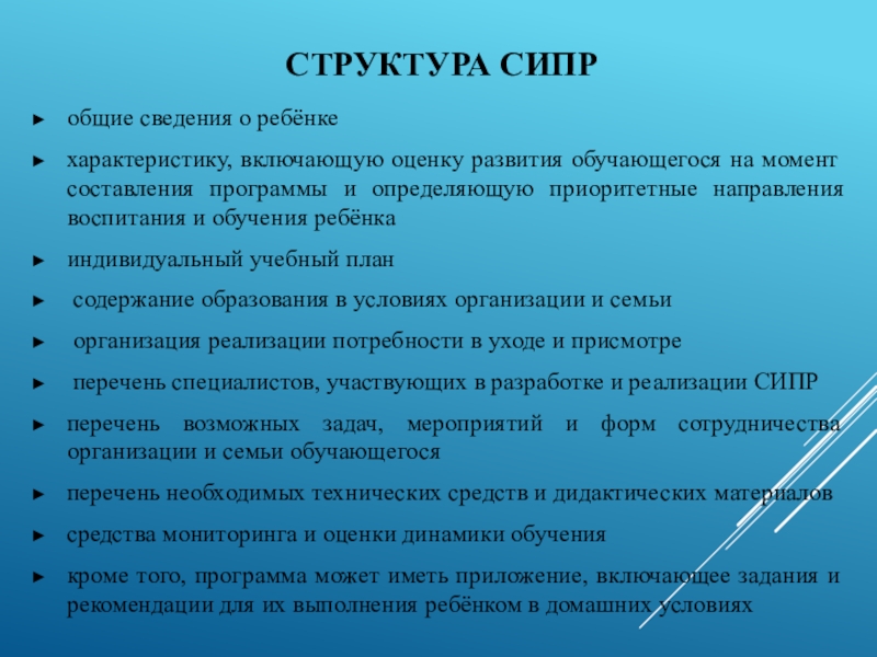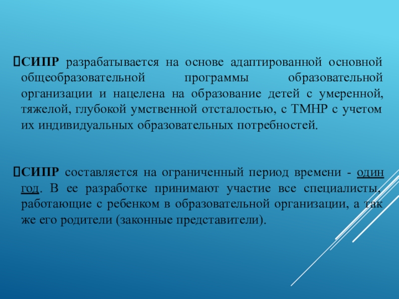 СИПР разрабатывается на основе адаптированной основной общеобразовательной программы образовательной организации и
