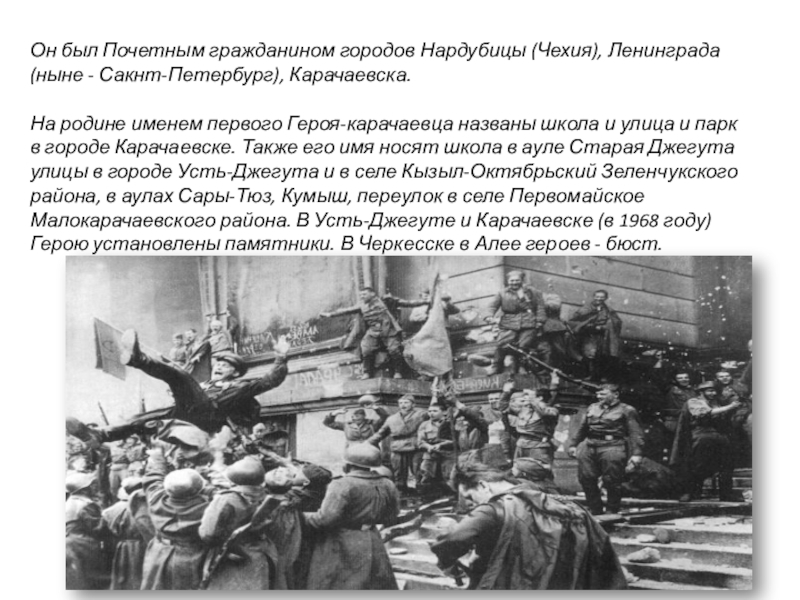 Он был Почетным гражданином городов Нардубицы (Чехия), Ленинграда (ныне - Сакнт-Петербург),