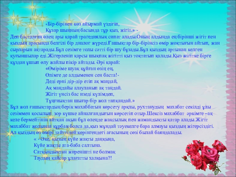 Құзар шыңның басында тұр қыз, жігіт.» -