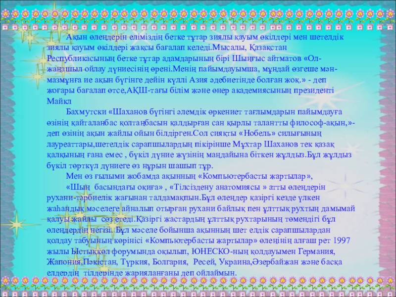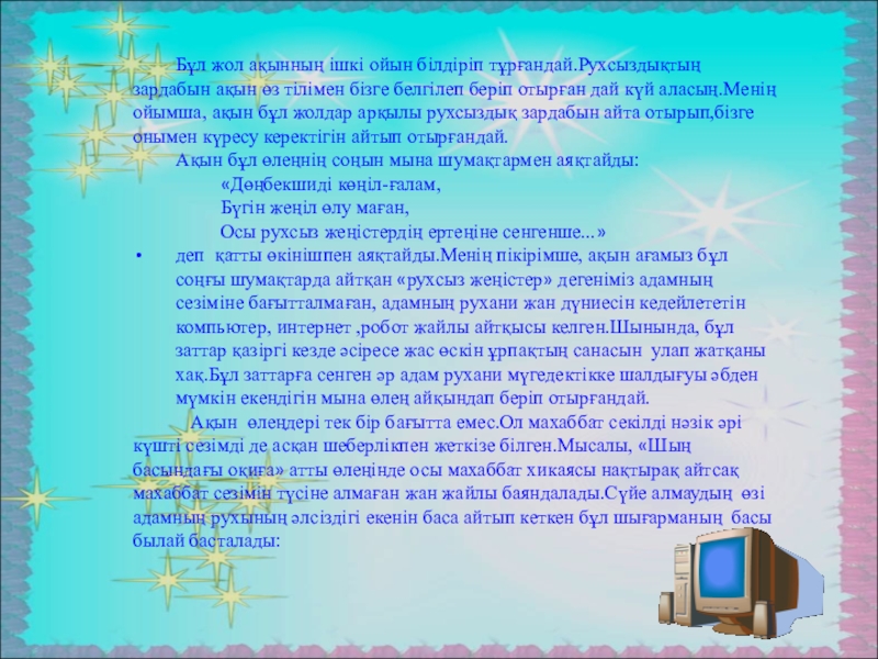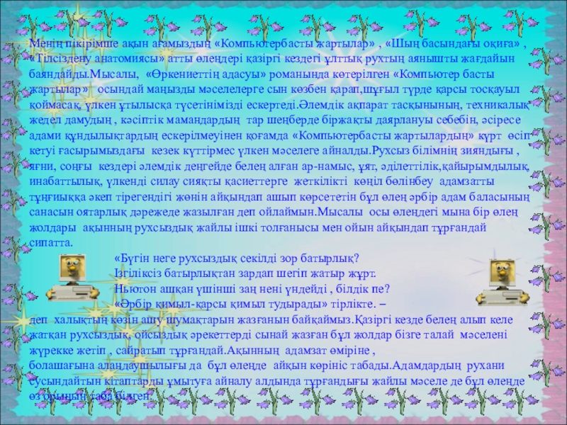 Мен өз ғылыми жобамда ақынның «Компьютербасты жартылар»,