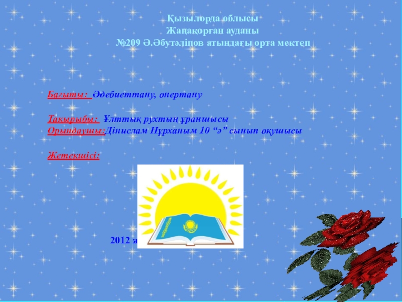 №209 Ә.Әбутәліпов атындағы орта мектептің қазақ тілі және әдебиеті пәні мұғалімі: Сыздықова Іңкәр.