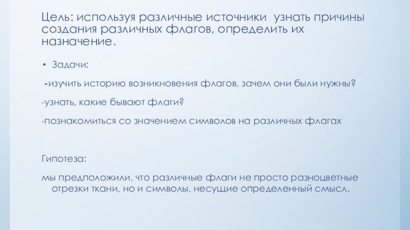 -изучить историю возникновения флагов, зачем они были нужны?