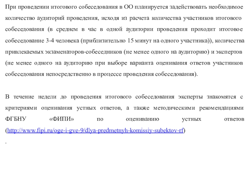 Слайд 8При проведении итогового собеседования в ОО планируется задействовать необходимое количество аудиторий