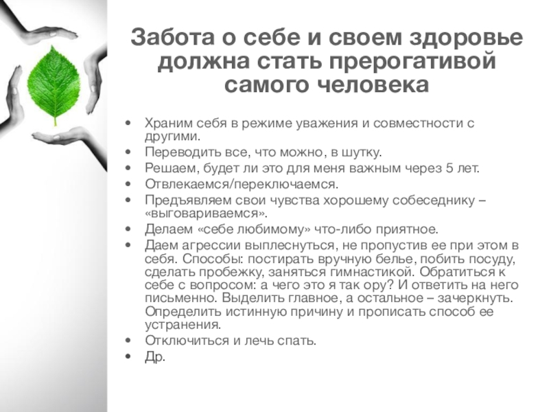 Забота о себе и своем здоровье должна стать прерогативой самого человека