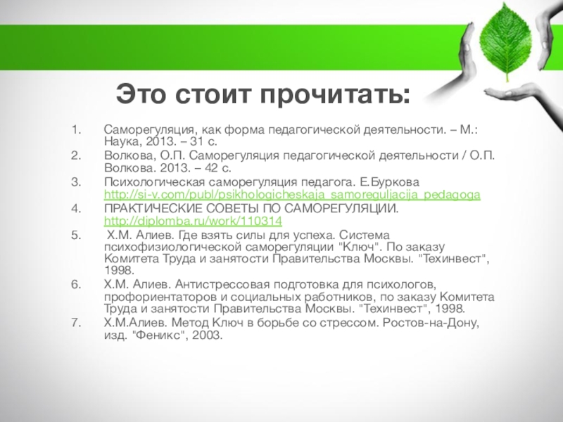 Психологическая саморегуляция педагога. Е.Буркова http://si-v.com/publ/psikhologicheskaja_samoreguljacija_pedagoga