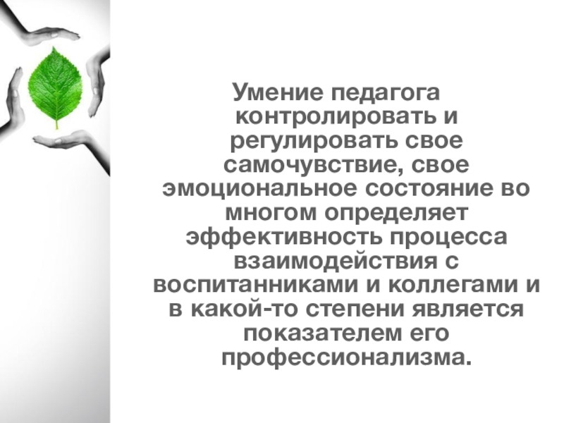 Умение педагога контролировать и регулировать свое самочувствие, свое эмоциональное состояние во