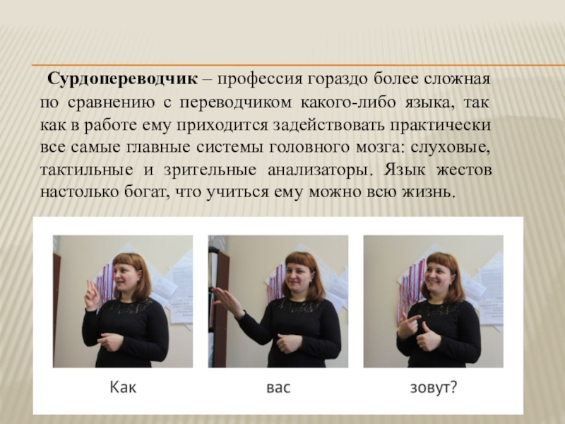 Слайд 6 Сурдопереводчик – профессия гораздо более сложная по сравнению с