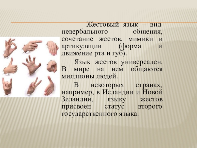 Слайд 4В лексический состав разговорного жестового языка входят более 4,5 тысяч жестов.