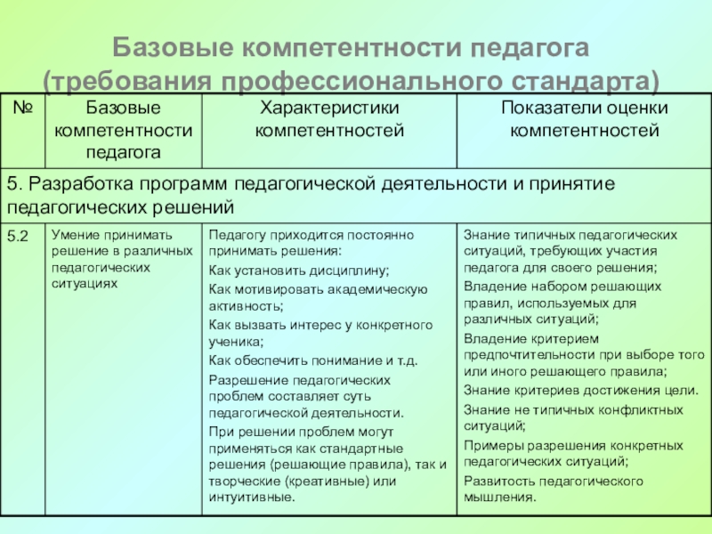 компетентность в принятии решений, связанных с разрешением педагогических задач