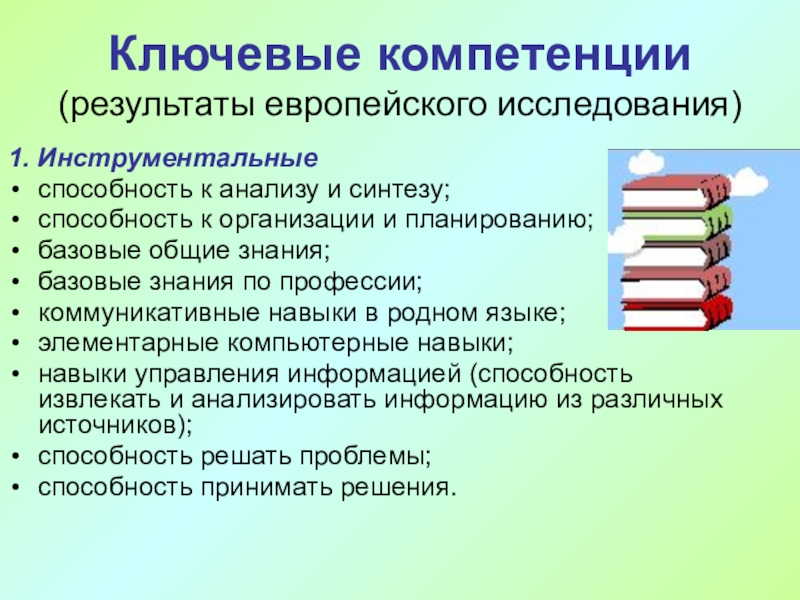 Слайд 11Ключевые компетенции (результаты европейского исследования)