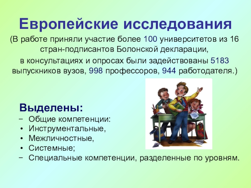 Слайд 10Европейские исследования