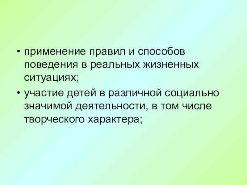Слайд 43применение правил и способов поведения в реальных жизненных ситуациях;