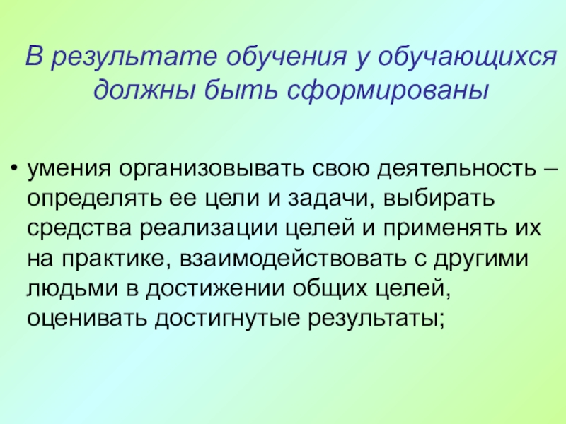 Слайд 7Результаты обучения и научения