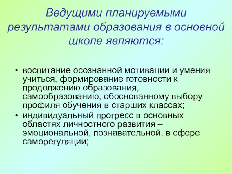 Слайд 48Ведущими планируемыми результатами образования в основной школе являются: