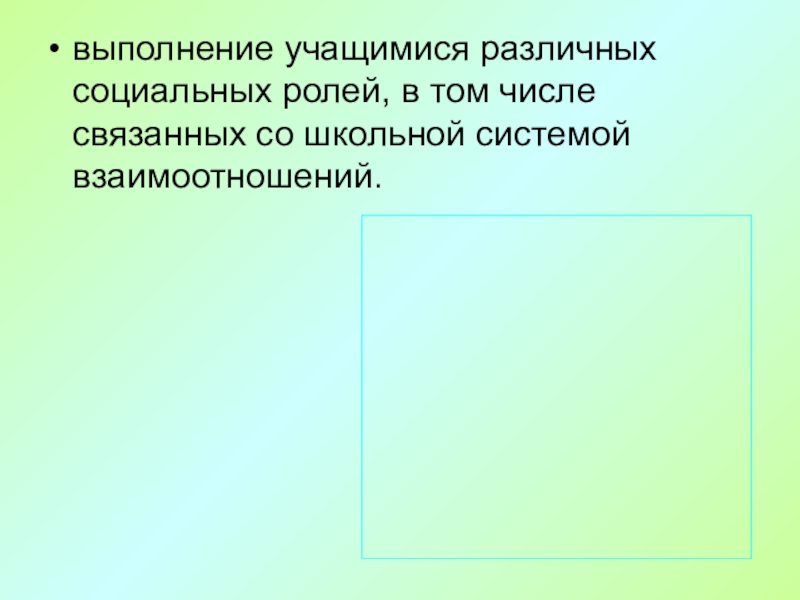 Слайд 44выполнение учащимися различных социальных ролей, в том числе связанных со школьной
