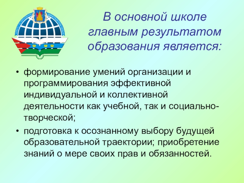 Слайд 45В основной школе главным результатом образования является: