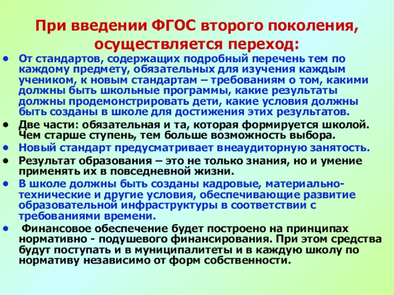 Слайд 3При введении ФГОС второго поколения, осуществляется переход: