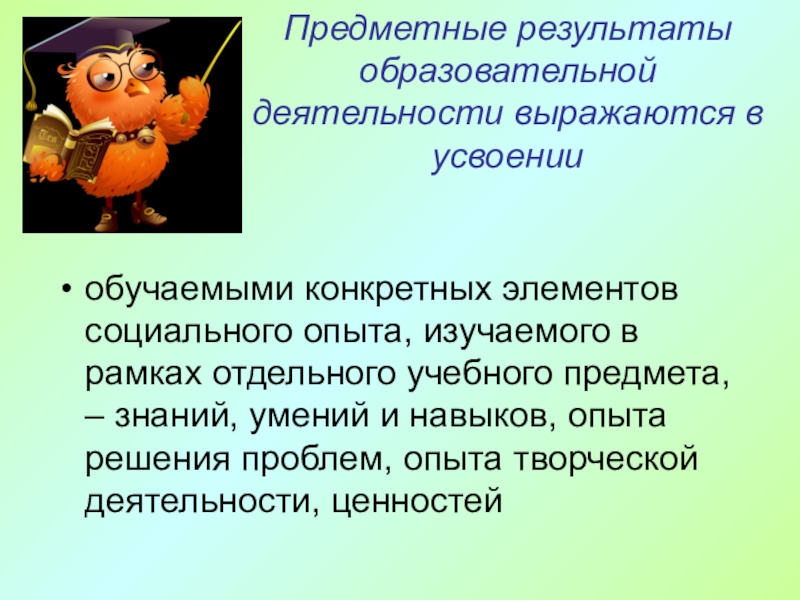 Слайд 40В структуре предметных образовательных результатов можно выделить следующие компоненты: