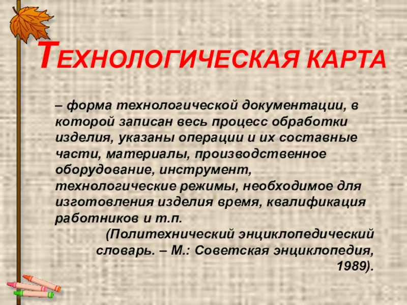 Слайд 4– форма технологической документации, в которой записан весь процесс обработки изделия,