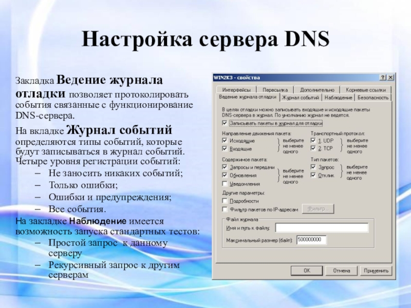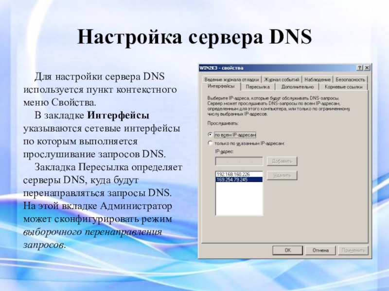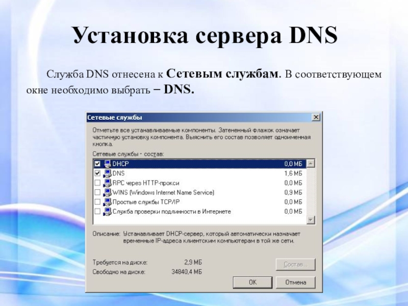 Слайд 1Настройка серверов DNS, WINS,DHCP