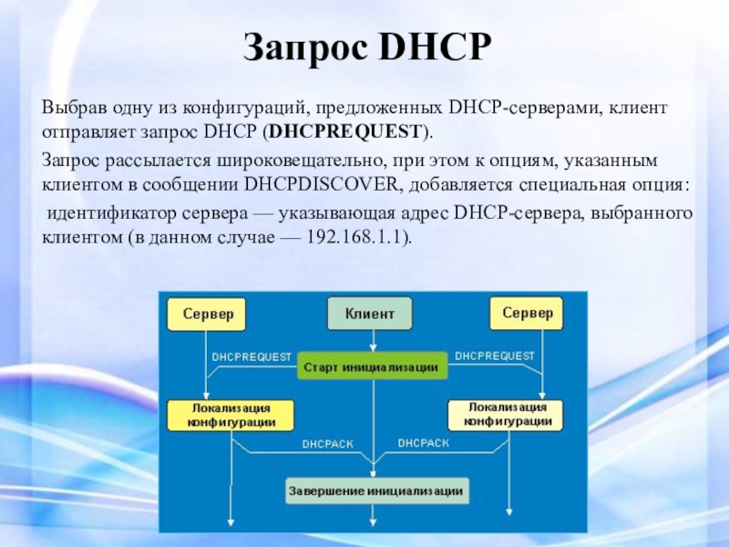 Выбрав одну из конфигураций, предложенных DHCP-серверами, клиент отправляет запрос DHCP
