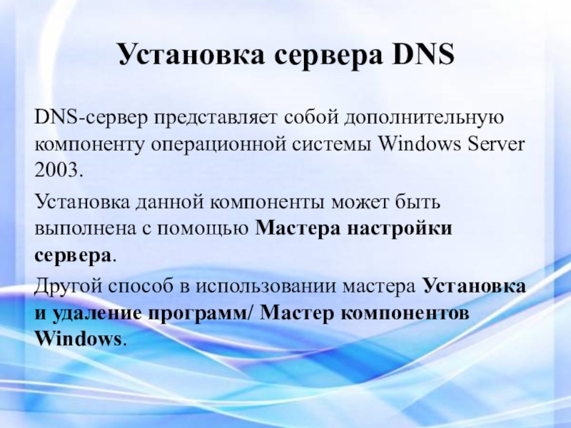DNS-сервер представляет собой дополнительную компоненту операционной системы Windows Server