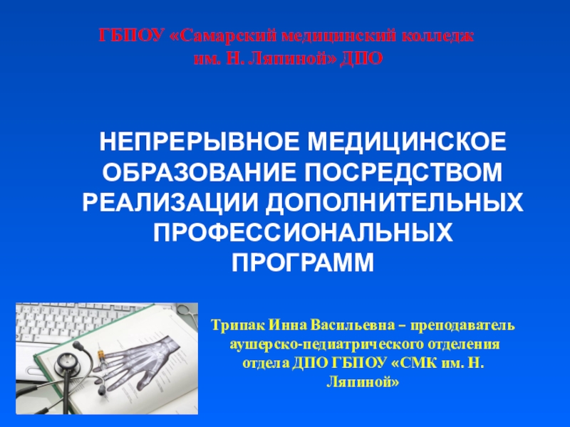 НЕПРЕРЫВНОЕ МЕДИЦИНСКОЕ ОБРАЗОВАНИЕ ПОСРЕДСТВОМ РЕАЛИЗАЦИИ ДОПОЛНИТЕЛЬНЫХ ПРОФЕССИОНАЛЬНЫХ ПРОГРАММ.