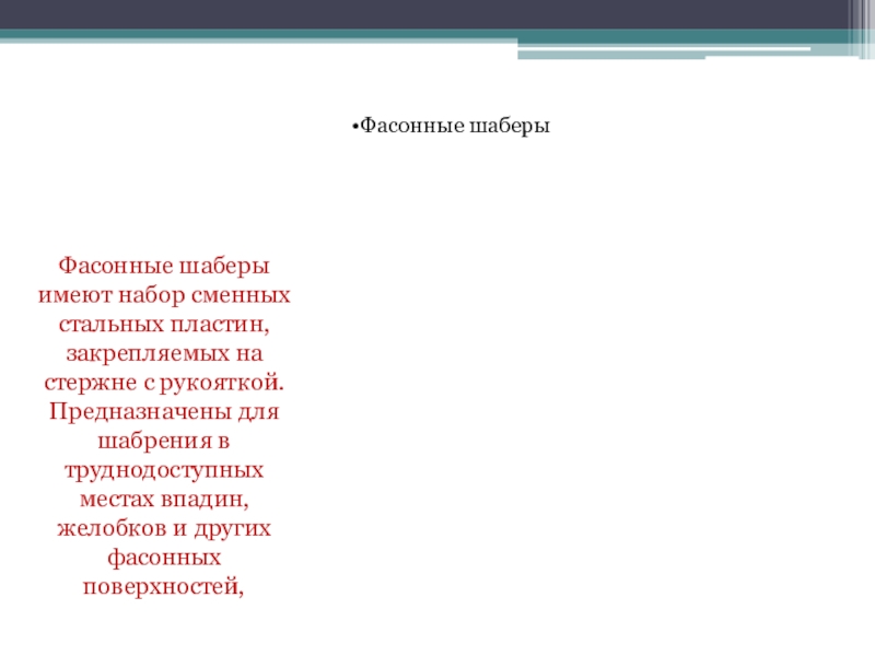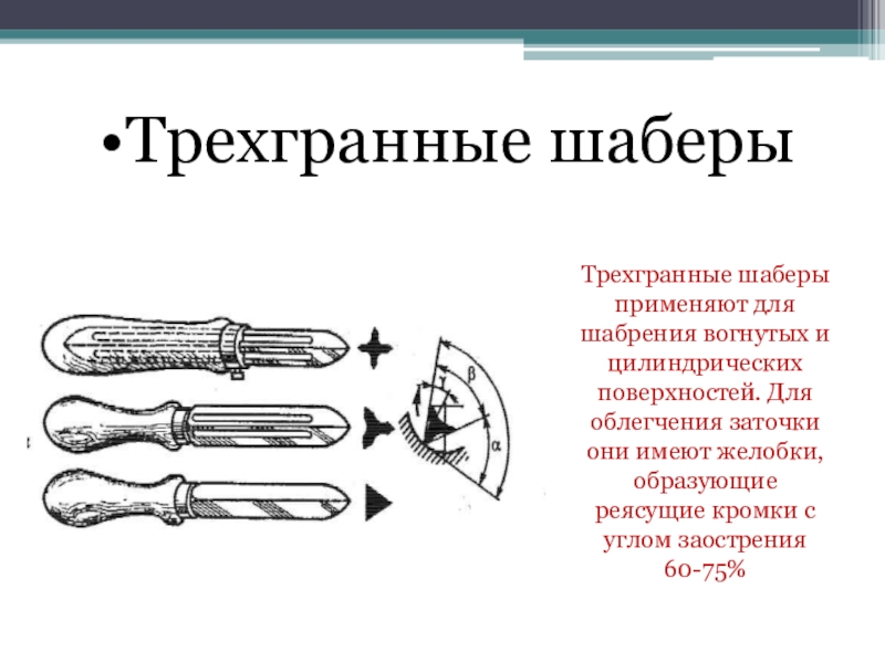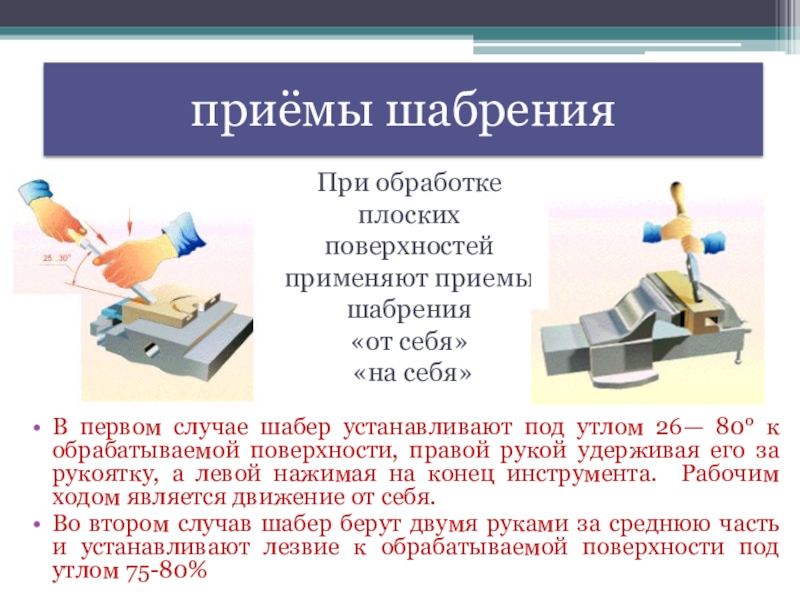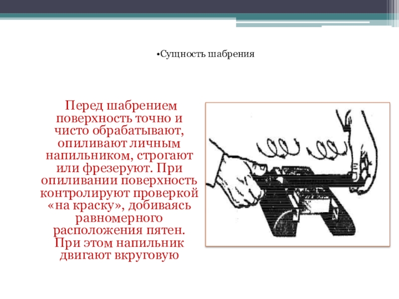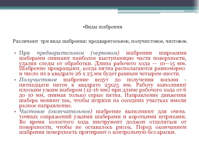 Различают три вида шабрения: предварительное, получистовое, чистовое.