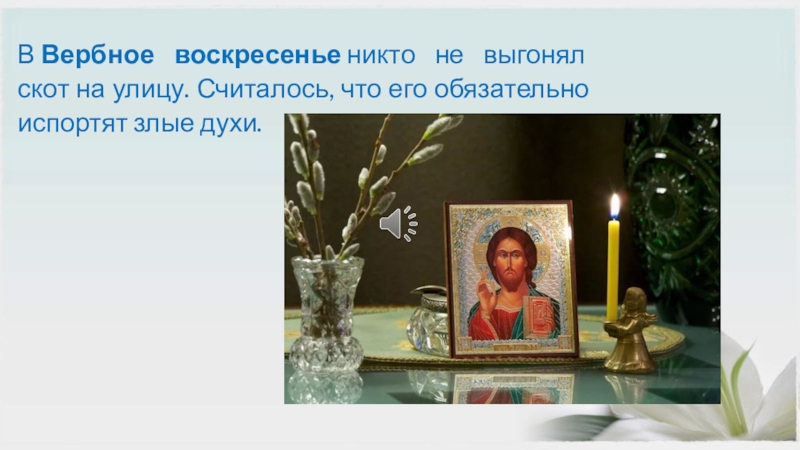 Слайд 10В Вербное воскресенье никто не выгонял скот на улицу. Считалось, что его обязательно