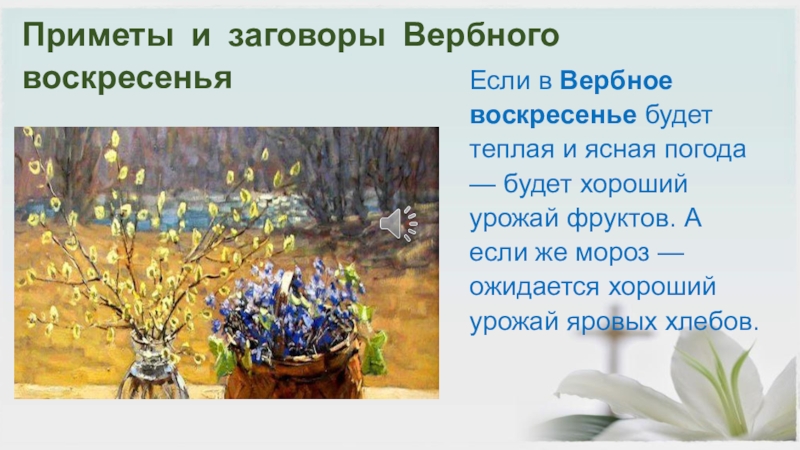 Слайд 8Приметы и заговоры Вербного воскресенья