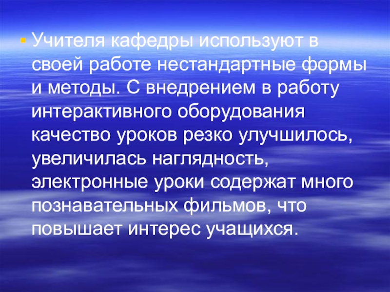 Слайд 8Учителя кафедры используют в своей работе нестандартные формы и методы. С