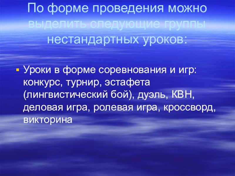 Слайд 4По форме проведения можно выделить следующие группы нестандартных уроков: