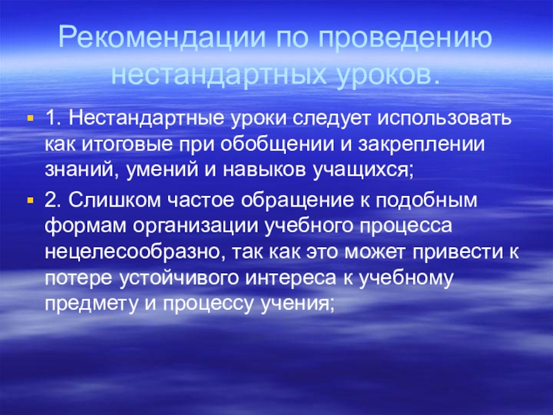 Слайд 6Рекомендации по проведению нестандартных уроков.