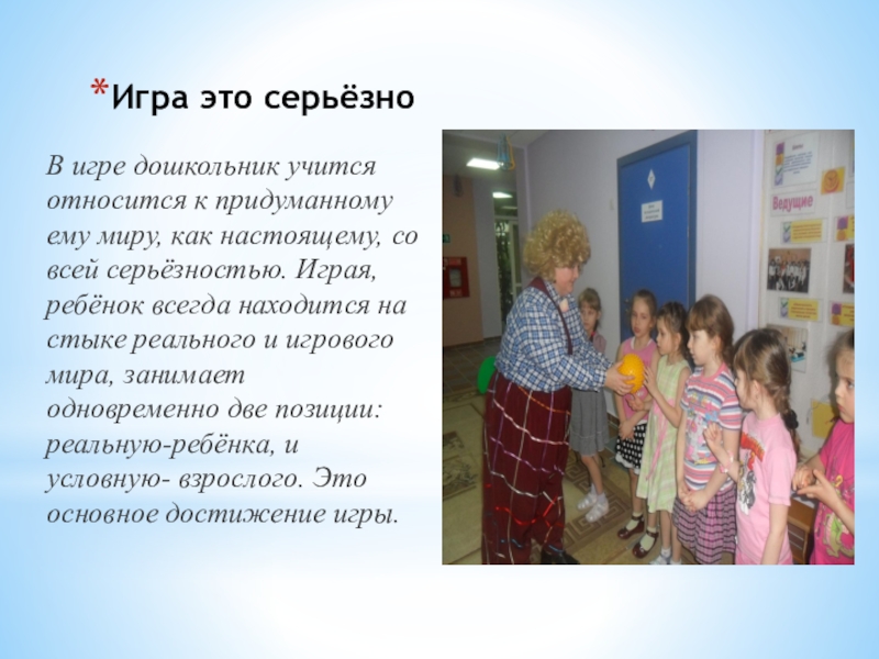 Презентация, доклад для родителей на тему Игра- это серьёзно.